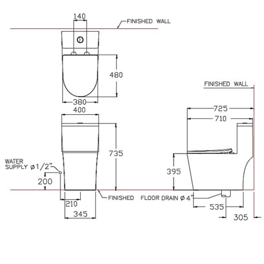 Thiết kế: Thân dài, thoát thẳng, S-Trap, tâm xả 305mm
