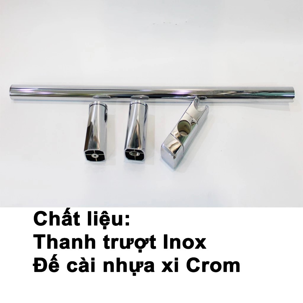 Chất liệu: thanh trượt Inox, đế cài, gác sen bằng nhựa xị mạ Crom, Niken sáng bóng bền bỉ cùng thời gian