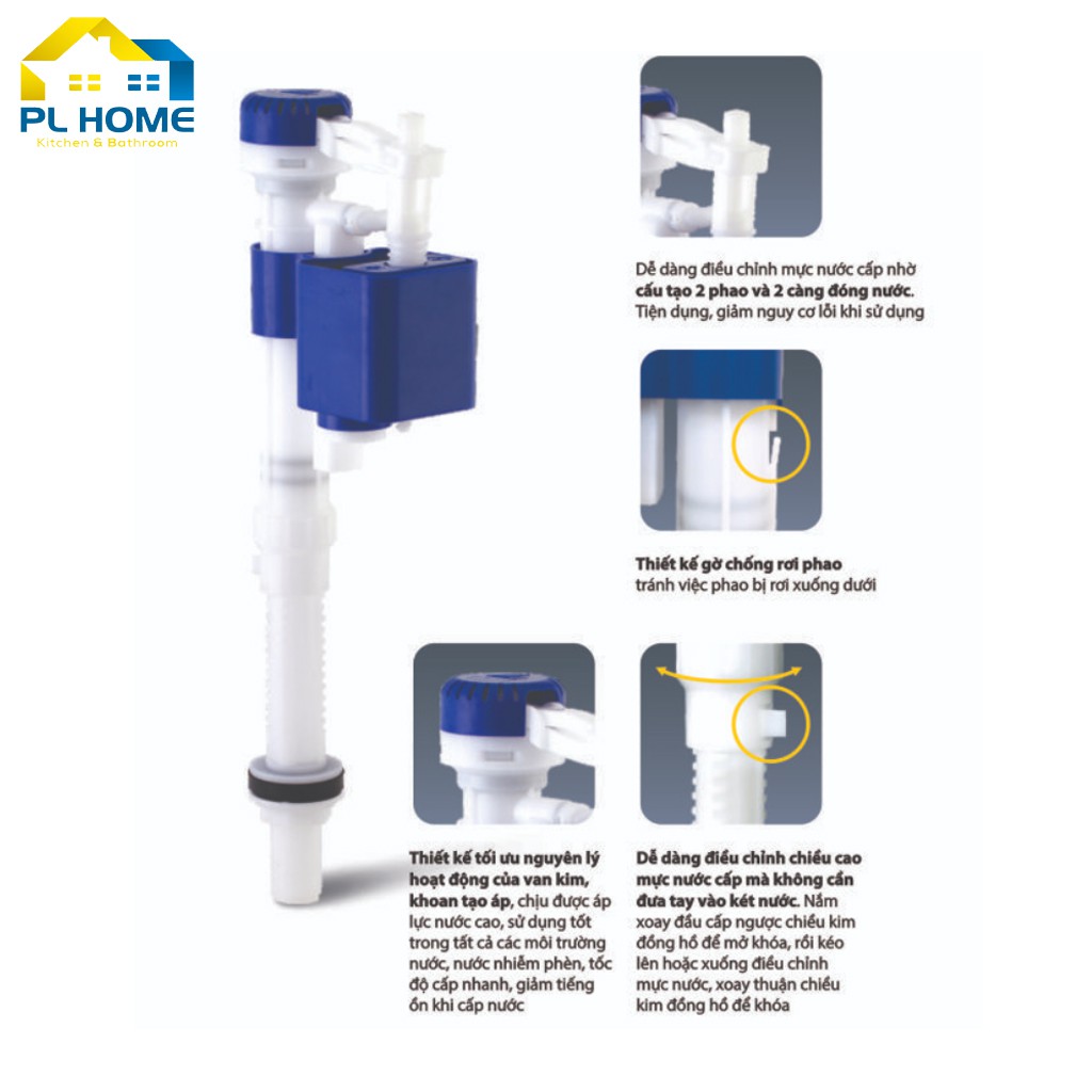 Phao cấp nước cho bồn cầu cao cấp – chịu áp lực cao, cấp nước nhanh, chống nước phèn, điều chỉnh được chiều cao phao